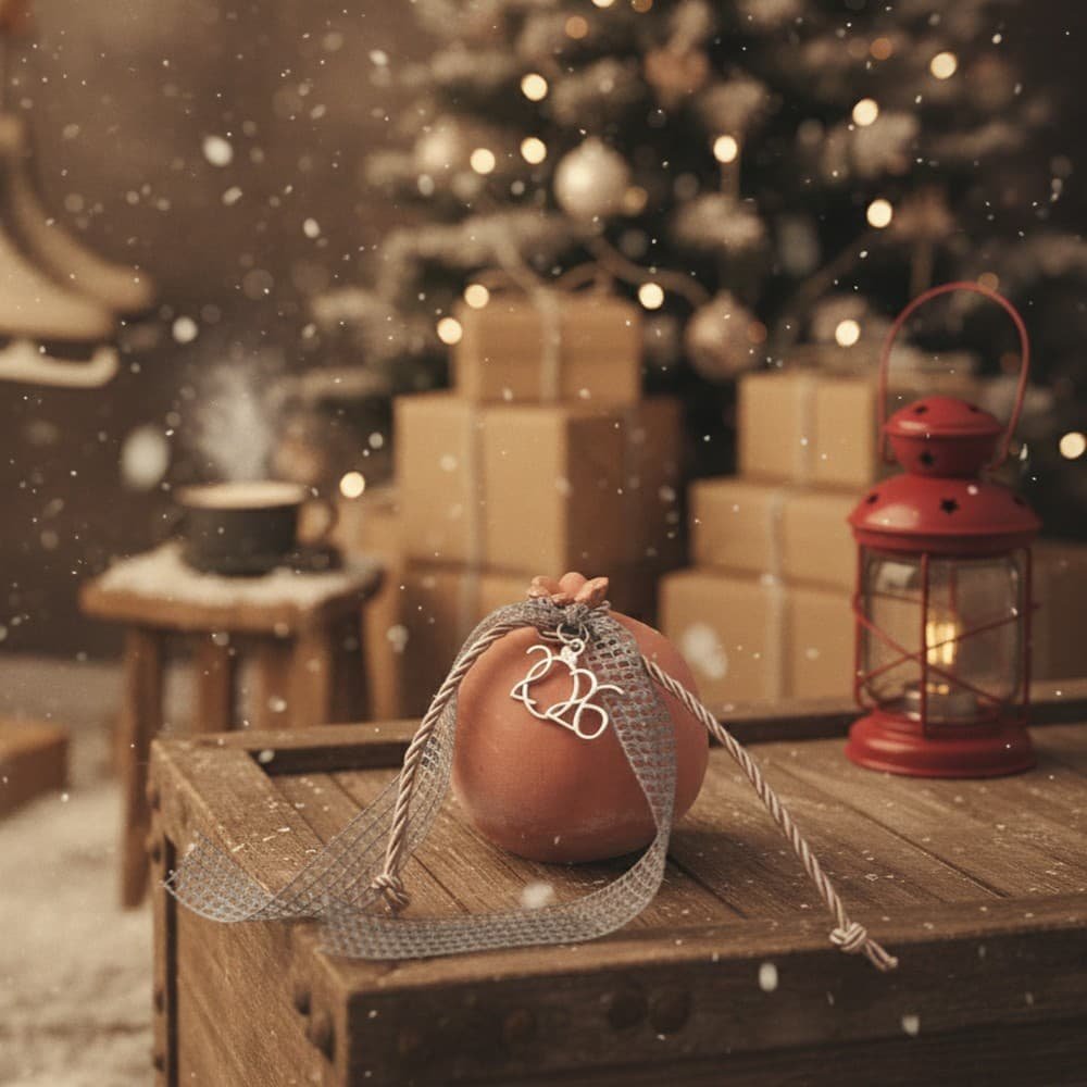 Ρόδι γούρι από σκόνη πορσελάνης σε γήινη τερακότα απόχρωση, ιδανικό για τον νέο χρόνο και για διακόσμηση με διακριτική, φυσική αισθητική. Η διακόσμηση περιλαμβάνει ασημένιο μεταλλικό στοιχείο “2026”, κορδόνι σε ουδέτερο χρώμα και μοντέρνα ασημί κορδέλα που προσφέρει στυλ και λάμψη.
