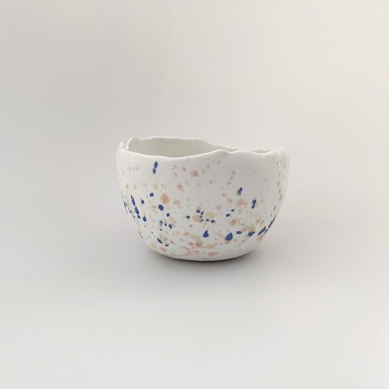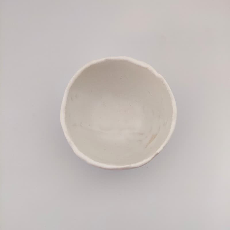 Πασχαλινό κεραμικό μπολάκι χειροποίητο από το εργαστήρι Kamotō, με οργανικό σχήμα και κυματιστή άκρη σε λευκή βάση.