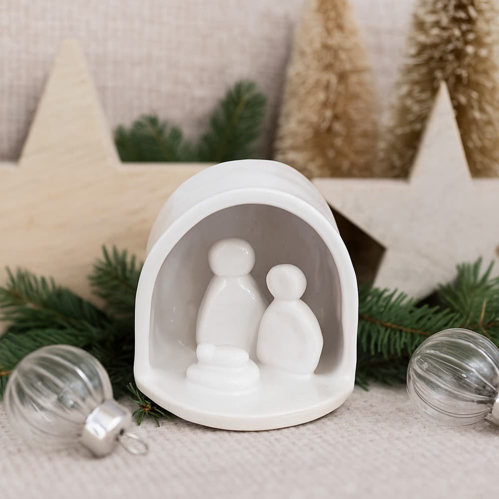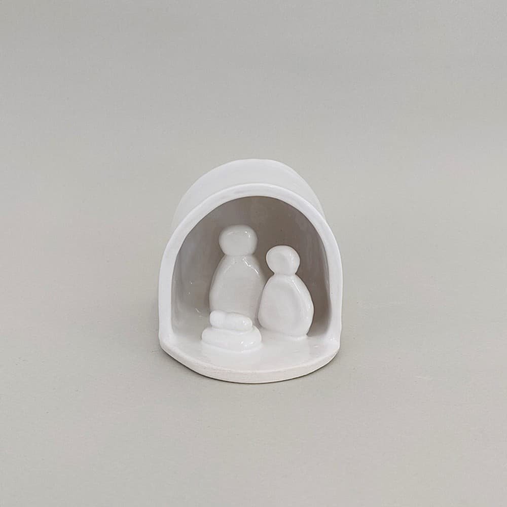 Ανακαλύψτε τη χειροποίητη λευκή κεραμική φάτνη, ένα διαχρονικό χριστουγεννιάτικο διακοσμητικό που δημιουργήθηκε με αγάπη στο εργαστήριό μας. Η Αγία Οικογένεια αποτυπώνεται με απόλυτη λιτότητα και κομψότητα, αναδεικνύοντας τη βαθιά σημασία της Γέννησης μέσα από καθαρές, μινιμαλιστικές γραμμές.​