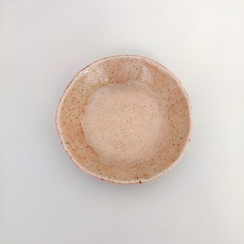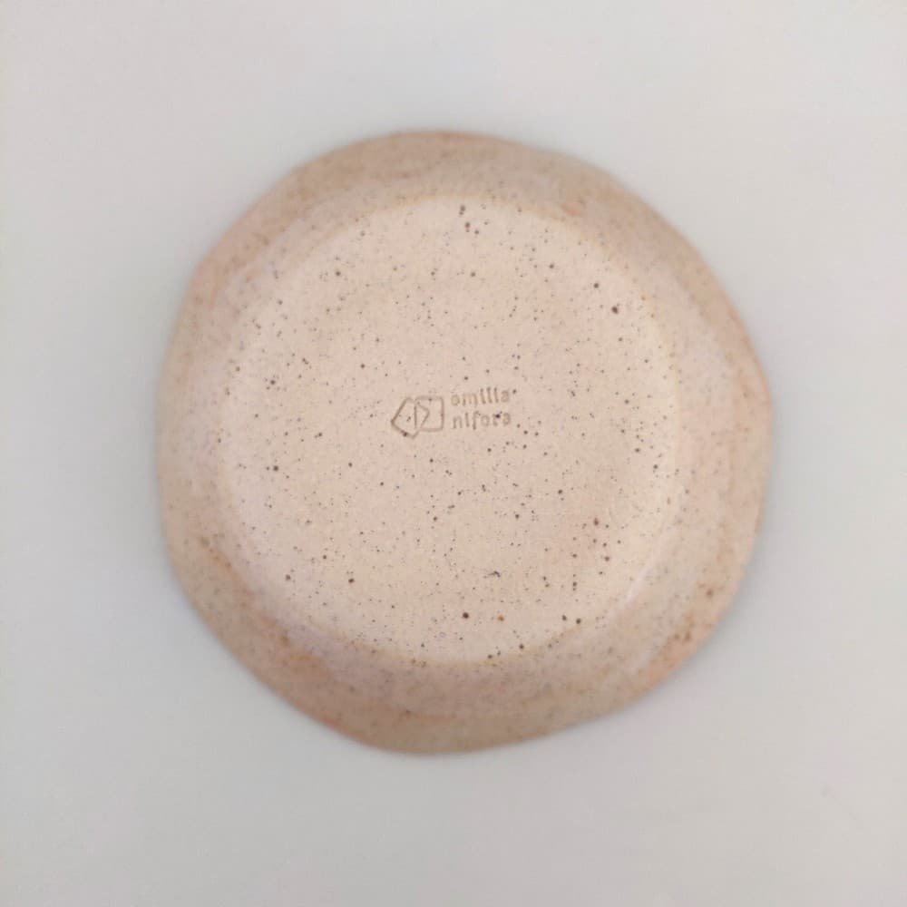 Ένα μικρό χειροποίητο μπωλ από stoneware, με απαλή ροζ‑μπεζ απόχρωση και διακριτές πιτσιλιές, ιδανικό για όσους αγαπούν τη minimal αισθητική στο τραπέζι τους.