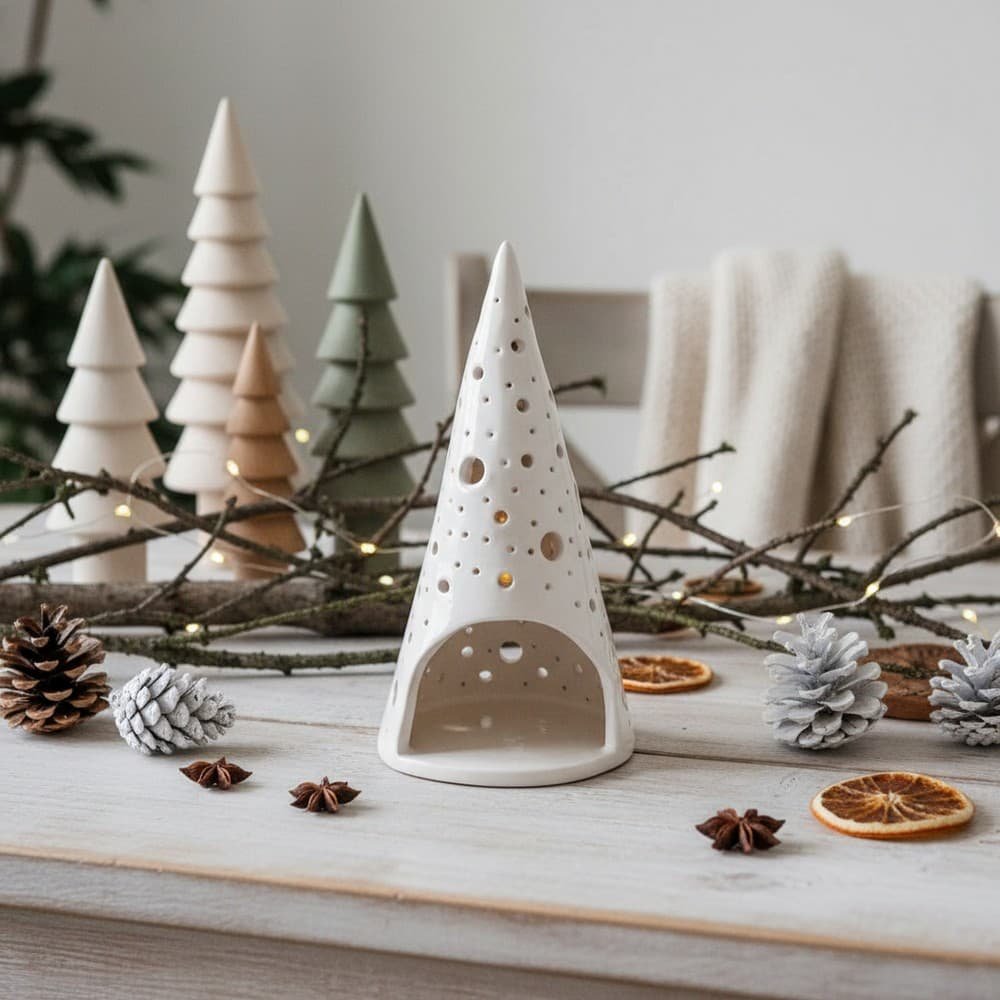 Κατασκευασμένο με λεπτομερή διάτρητη διακόσμηση, το δέντρο διαθέτει άνοιγμα στη βάση για την τοποθέτηση κεριού τύπου ρεσώ. Κάθε κομμάτι είναι πλασμένο με φροντίδα στο εργαστήριο, καθιστώντας το πραγματικά μοναδικό. Το μινιμαλιστικό λευκό χρώμα και το σκανδιναβικό design το καθιστούν ιδανικό για κάθε χώρο, από το παραδοσιακό μέχρι το μοντέρνο σπίτι.