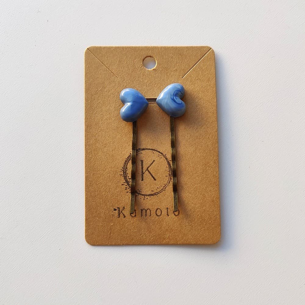 Τσιμπιδάκια μαλλιών με καρδούλες από πολυμερικό πηλό σε απόχωση του μπλε, που δίνει μια απαλή, ονειρική πινελιά σε κάθε χτένισμα.